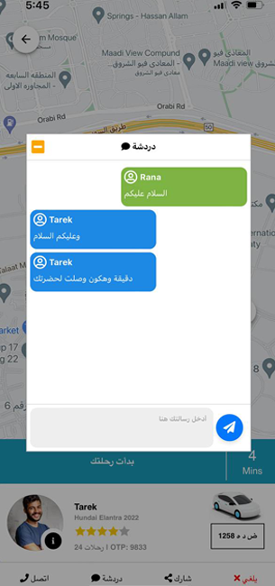 يمكن للعملاء والسائقين التواصل عن طريق الفيديو كول او المكالمات الصوتية بشكل مجاني او الدردشة النصية بكل سهولة